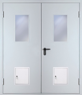 Двупольная противопожарная дверь EI 60 со стеклом и стыковочными узлами 08