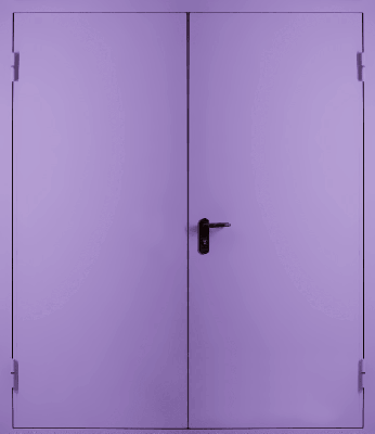 - Глухие двупольные огнестойкие двери состоят из коробки, двух полотен, внутренних наполнителей, деталей фурнитуры. Размеры зависят от места монтажа. Чаще всего их устанавливают на запасном эвакуационном входе, лестничной клетке, лифте, тамбуре. Поэтому конструкция имеет нестандартные параметры.