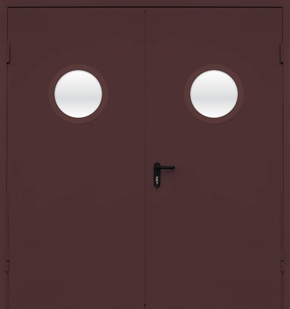 Двупольная противопожарная дверь с круглым стеклом (RAL 8017)