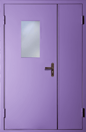 Полуторная техническая дверь со стеклом (RAL 4005)