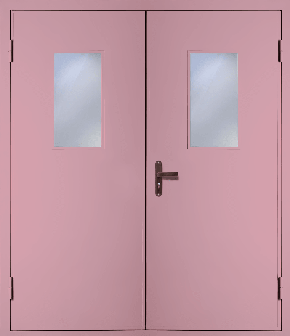 Двустворчатая техническая дверь со стеклом (RAL 3015)